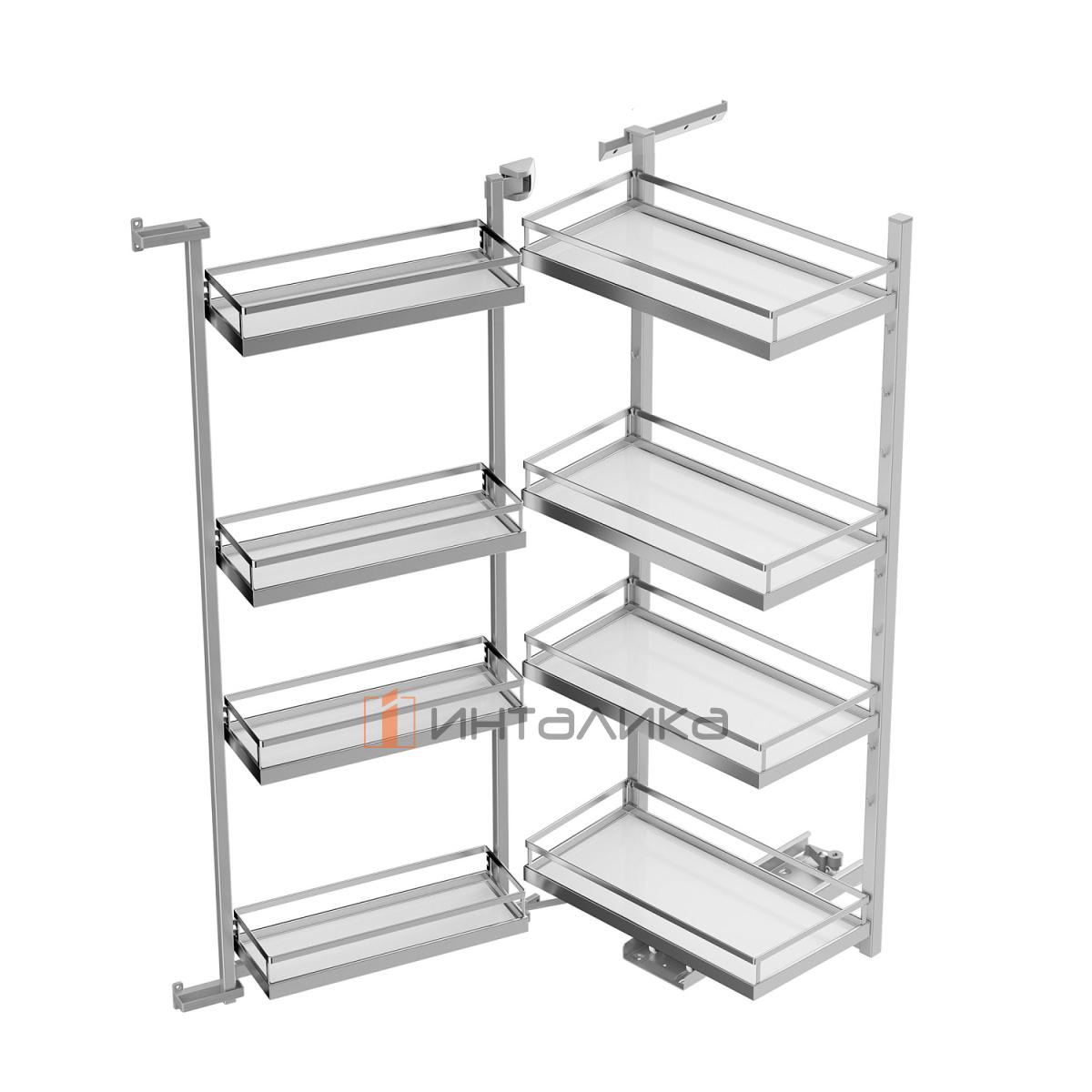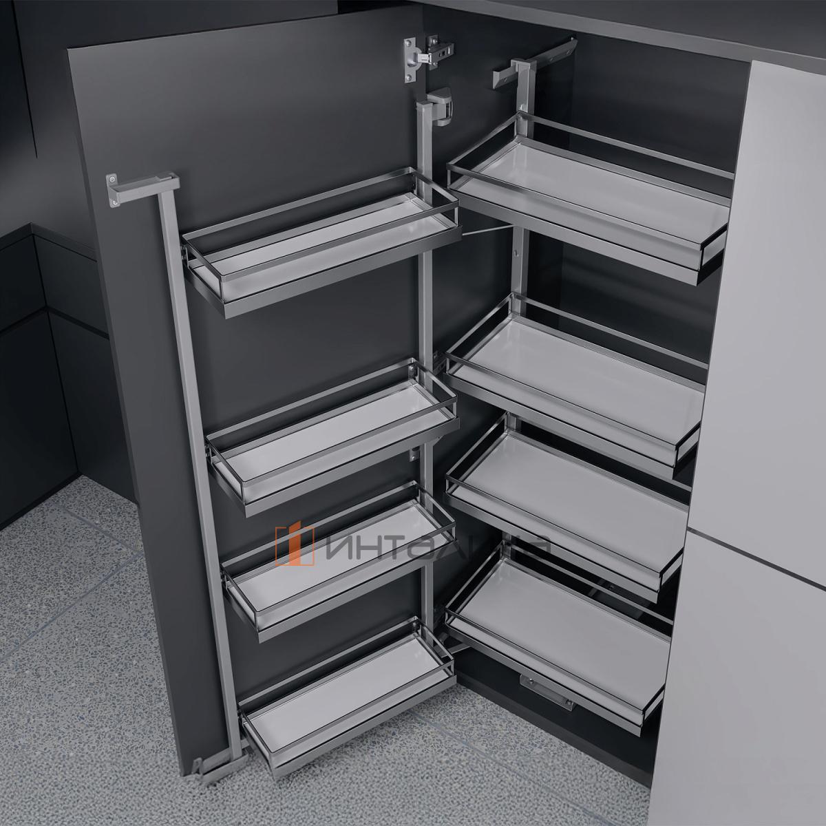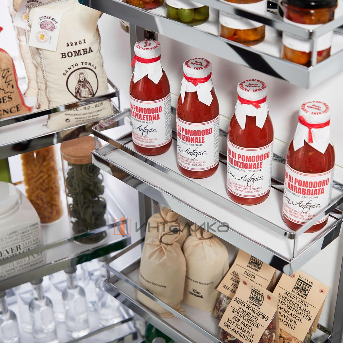 Частичное выдвижение полок на раме, при открывании фасада, обеспечивает комфортный доступ и отличный обзор содержимого