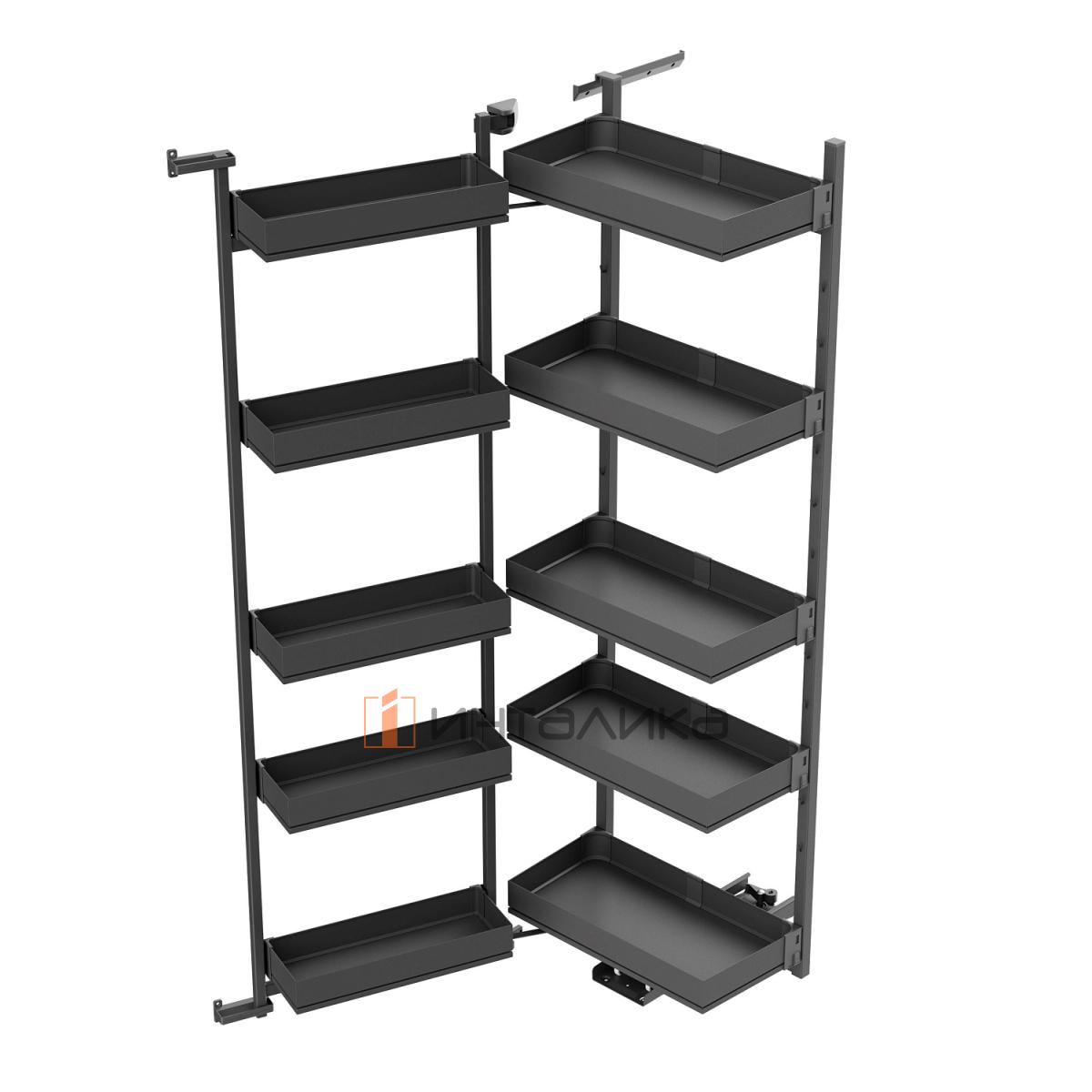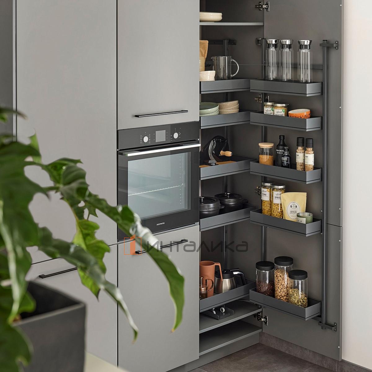 Распашной шкаф-колонна KESSEBOHMER Tandem II 450, 5 полок Arena pure с доводчиком на закрывание, Anti-slip, H1700, G70, антрацит, 2976599846