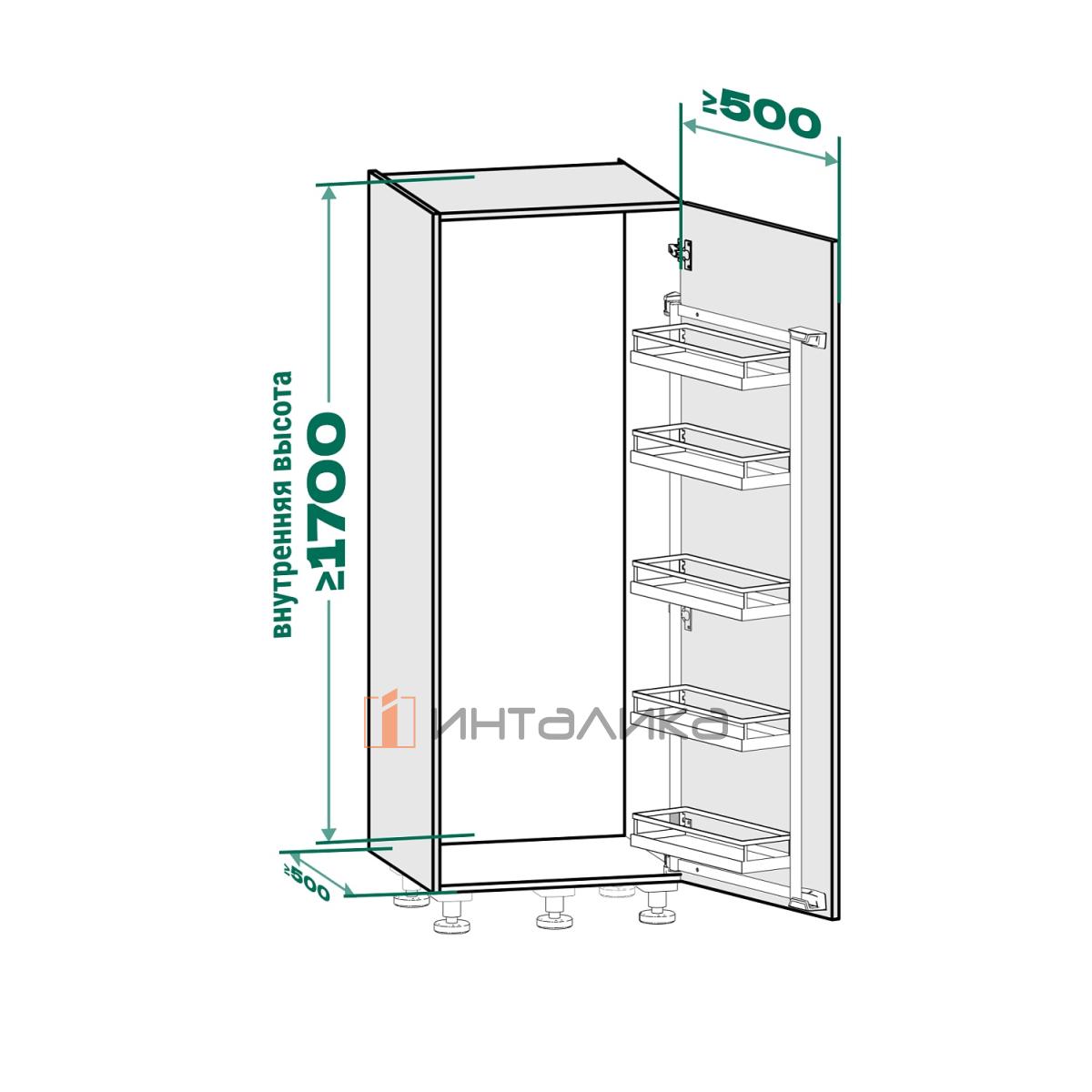 Распашной шкаф-колонна KESSEBOHMER Tandem Side 500, 5 полок Arena style, Anti-slip, H1700, G25, белый/хром, 0036670005