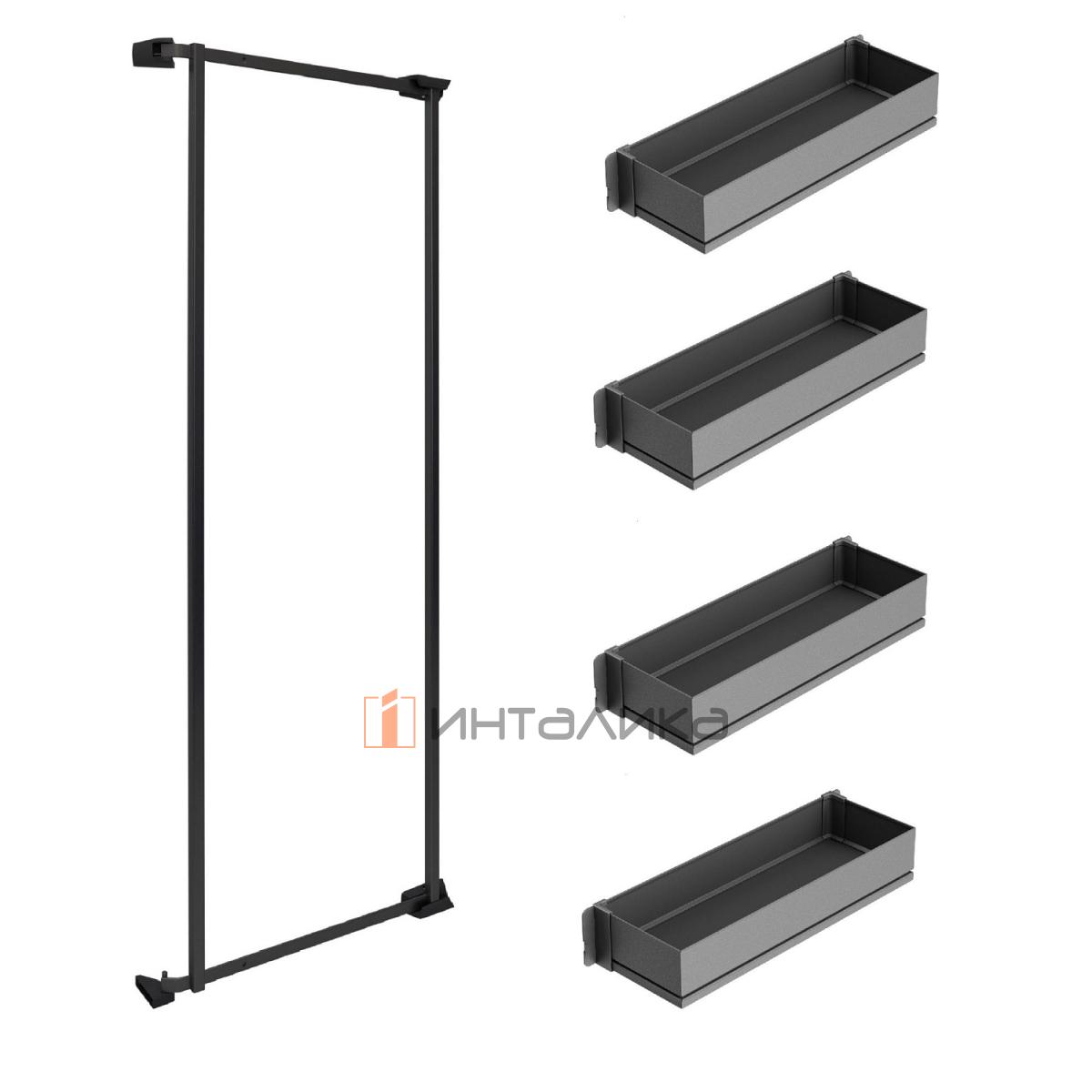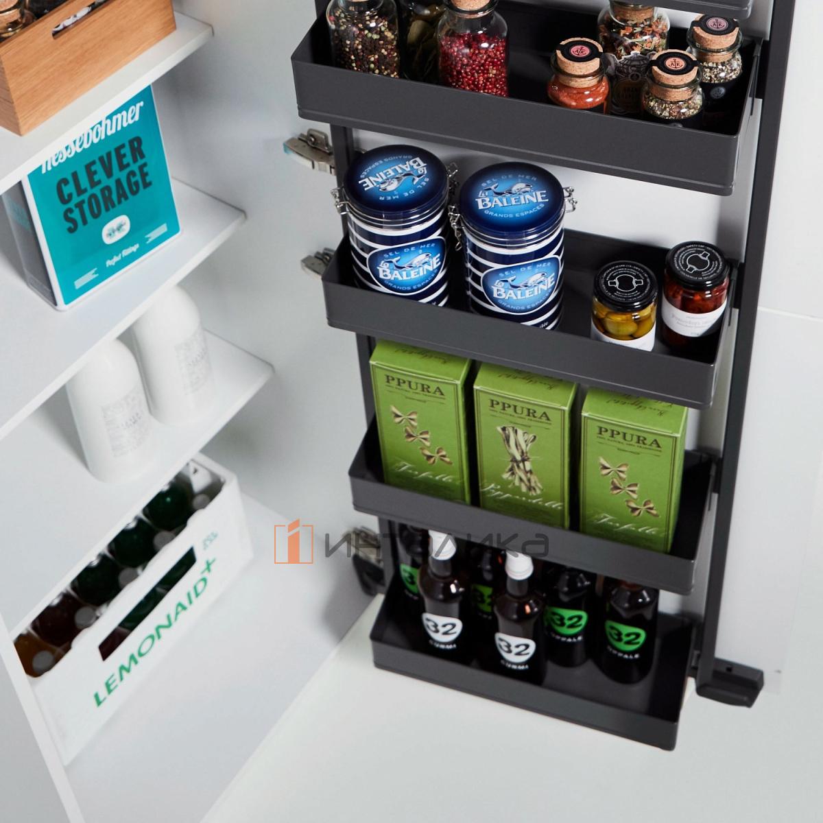 Распашной шкаф-колонна KESSEBOHMER Tandem Side 500, 4 полки Arena pure, Anti-slip, H1100, G25, антрацит, 0036069846