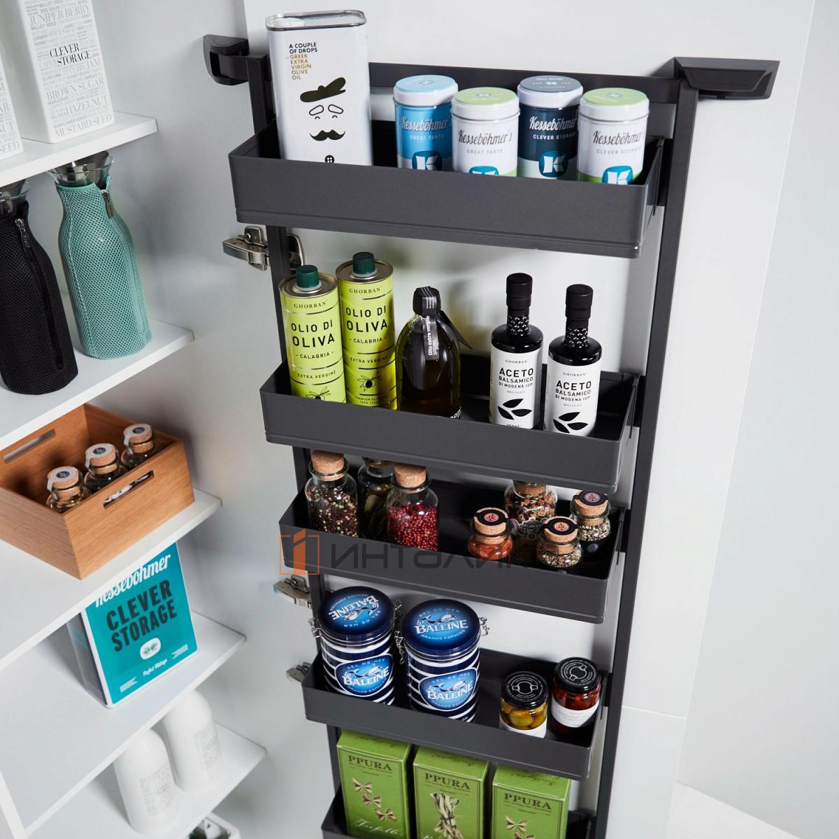 Распашной шкаф-колонна KESSEBOHMER Tandem Side 600, 5 полок Arena pure, Anti-slip, H1700, G25, антрацит, 0036119846