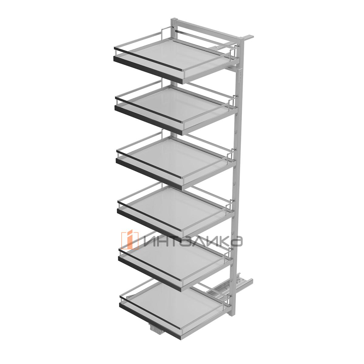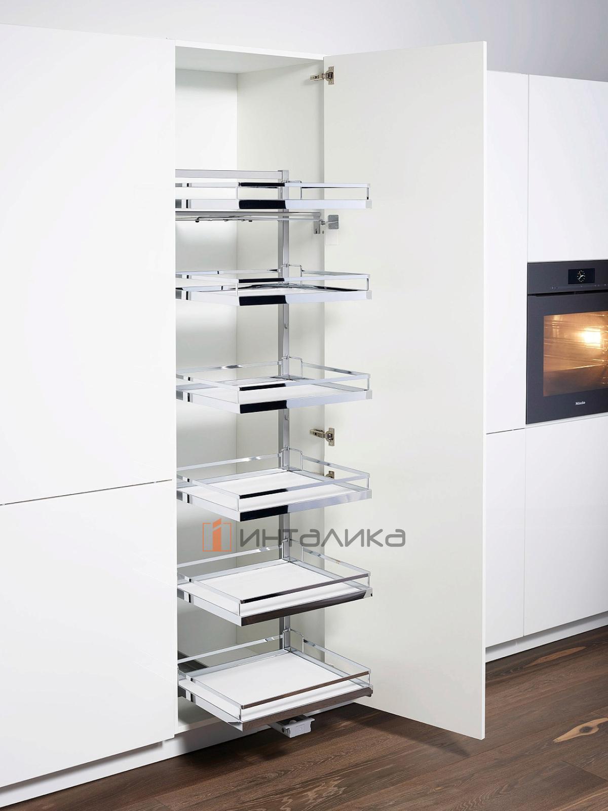 Распашной шкаф-колонна KESSEBOHMER Tandem Solo 600, 6 полок Arena style с доводчиком на закрывание, Anti-slip, H1800, G100, белый/хром, 3599600005