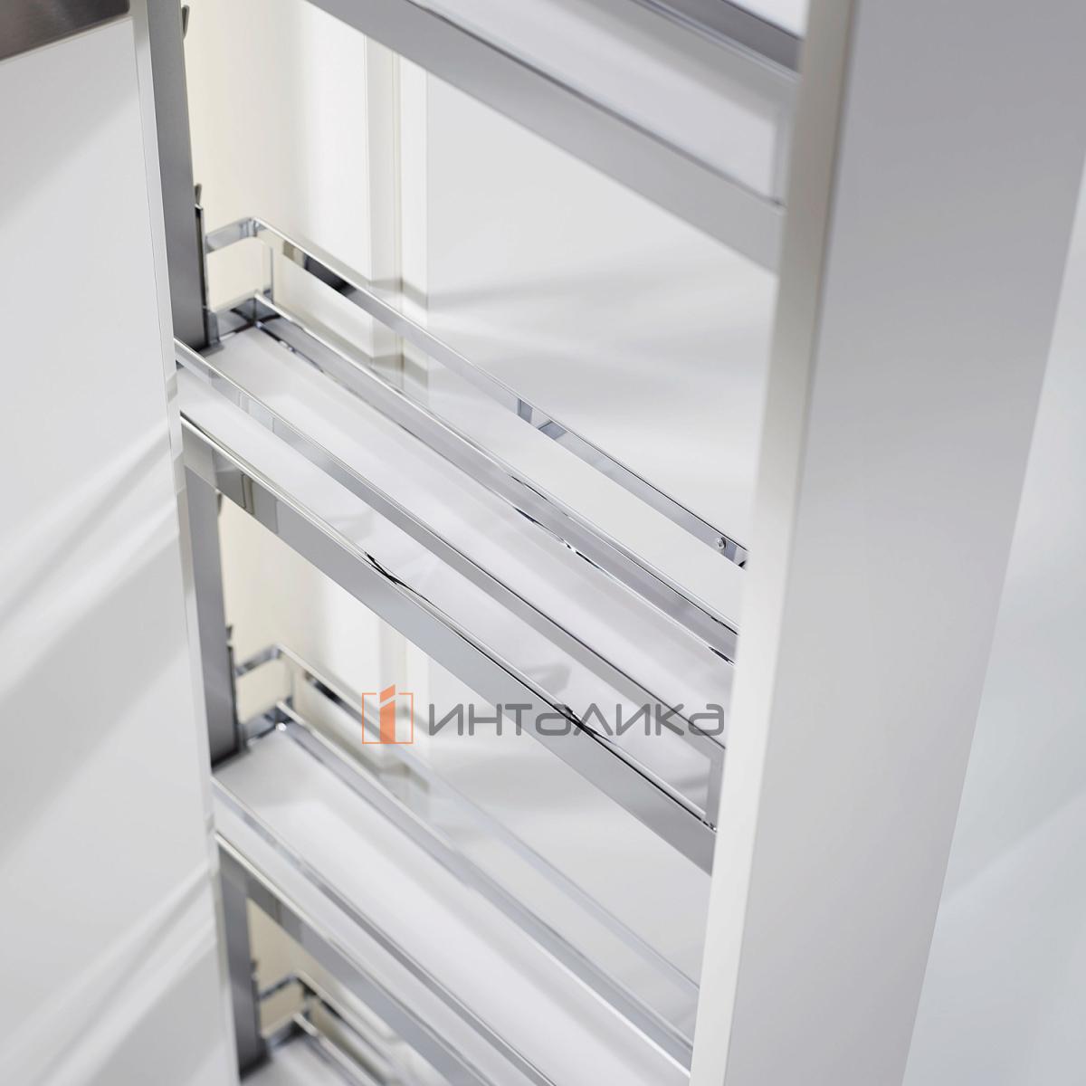 Выдвижной шкаф-колонна KESSEBOHMER Dispensa 250, 5 полок Arena style с доводчиком на закрывание, полное выдвижение, Anti-slip, H1600-2000, G100, белый/хром, 3580890005