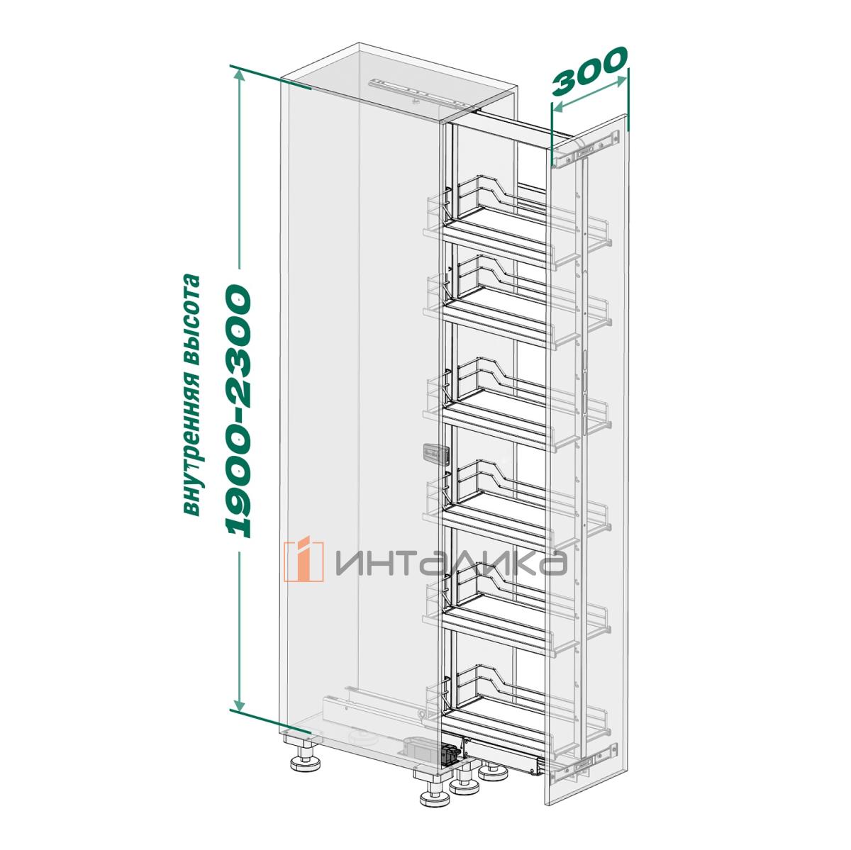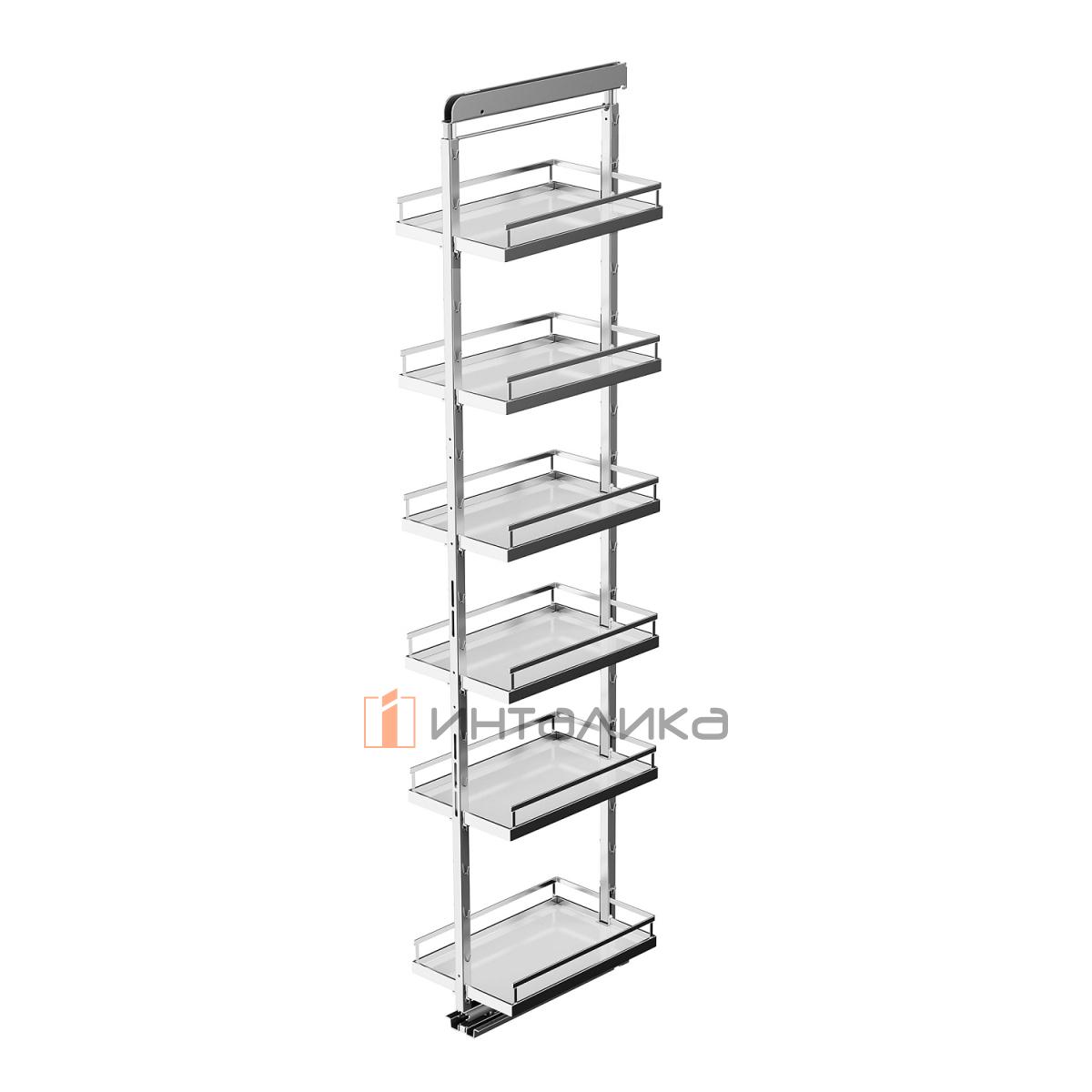 Выдвижной шкаф-колонна KESSEBOHMER Dispensa 300, 6 полок Arena style с доводчиком на закрывание, полное выдвижение, Anti-slip, H1900-2300, G100, белый/хром, 3500760005