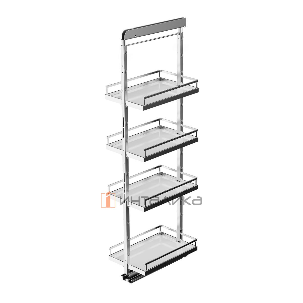 Выдвижной шкаф-колонна KESSEBOHMER Dispensa 450, 4 полки Arena style с доводчиком на закрывание, полное выдвижение, Anti-slip, H1200-1600, G100, белый/хром, 3500720005
