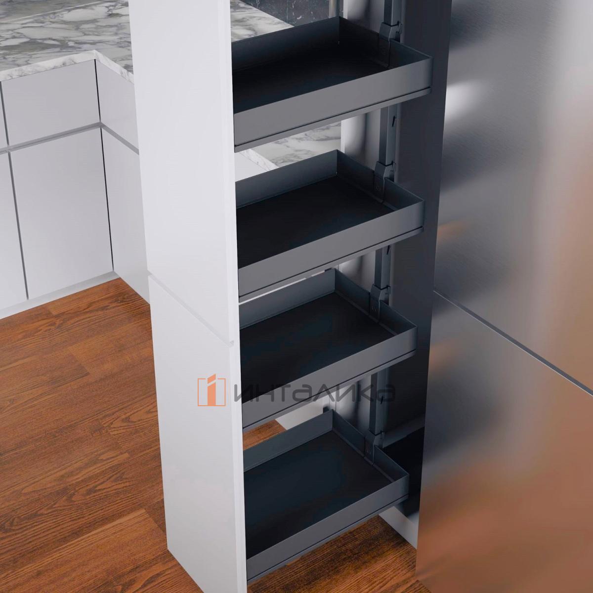 Выдвижной шкаф-колонна KESSEBOHMER Dispensa 450, 4 полки Arena pure с доводчиком на закрывание, полное выдвижение, Anti-slip, H1200-1600, G100, антрацит, 2900819846