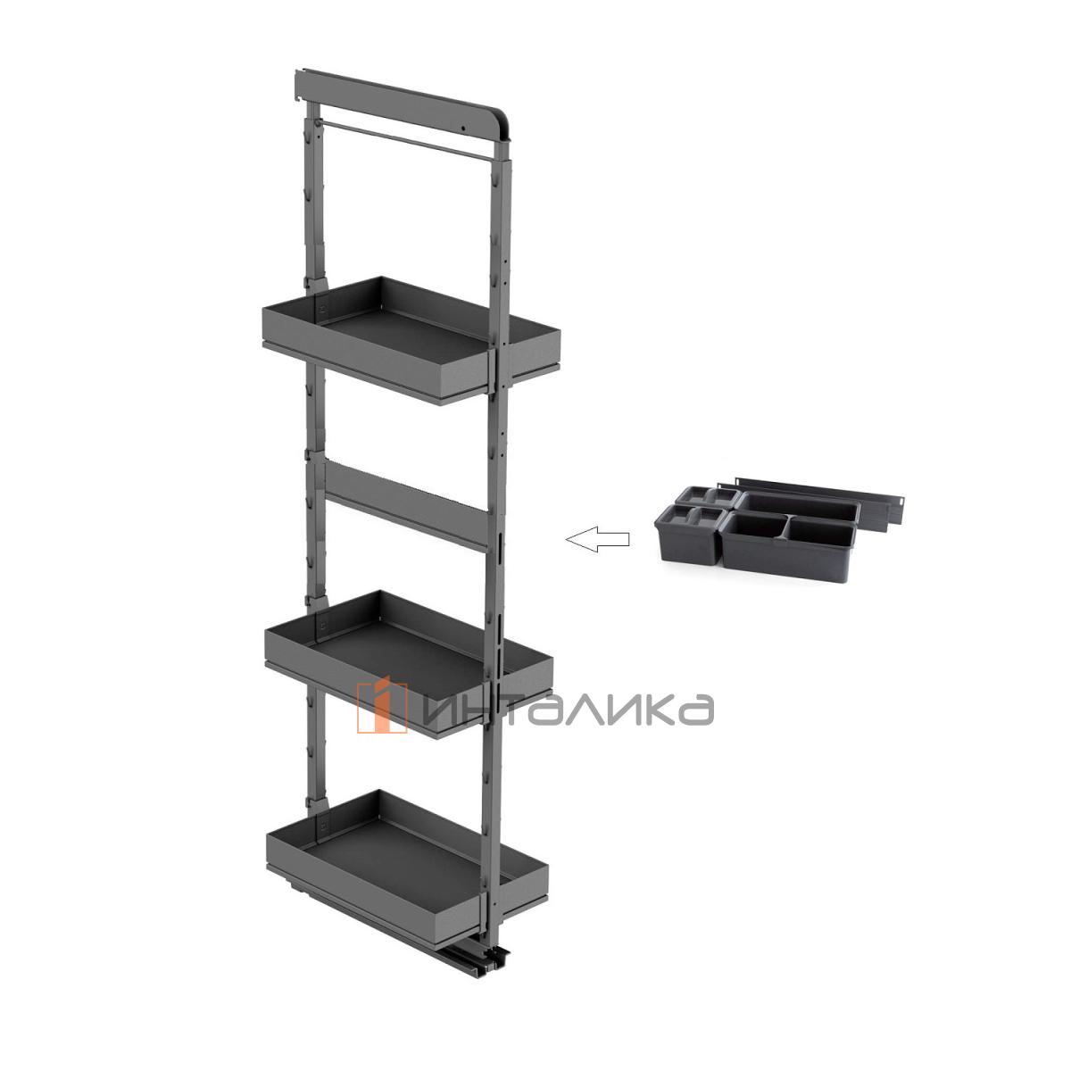 Выдвижной шкаф-колонна KESSEBOHMER Dispensa Youboxx 300, 3 полки Arena pure, полное выдвижение, набор Youboxx №3, Anti-slip, H1200-1600, G100, антрацит, 2981429846