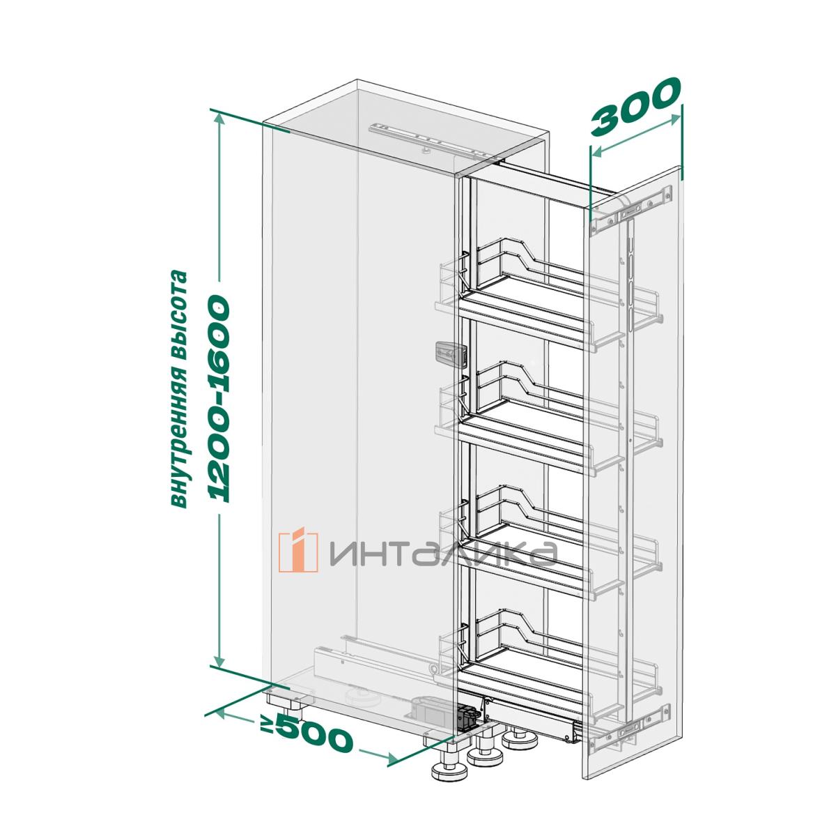 Минимальные внутренние габариты корпуса для установки системы Диспенса: ширина - 262 мм, высота - 1200-1600 мм, глубина - 500 мм