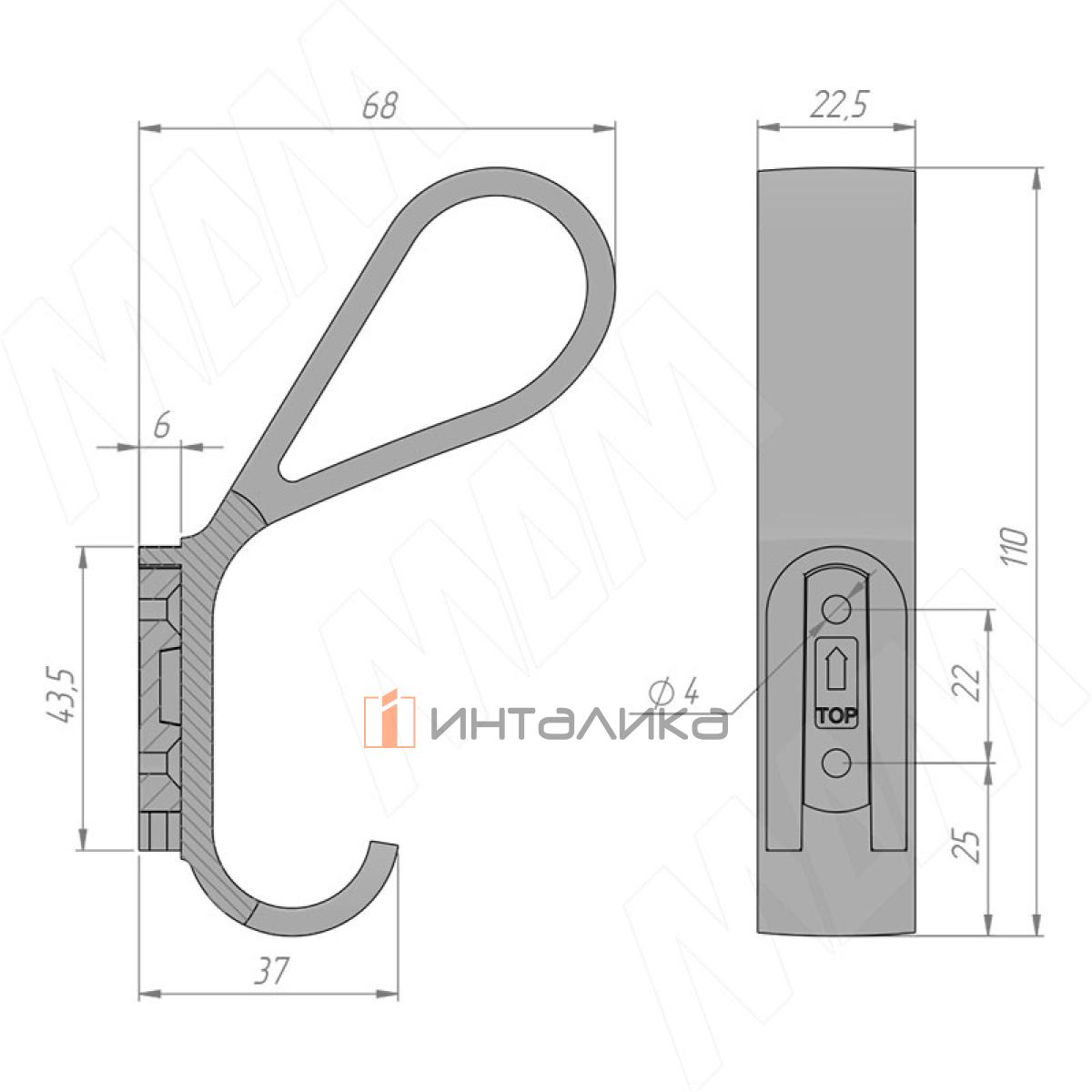 Крючок двухрожковый черный матовый, HK.43.BLM