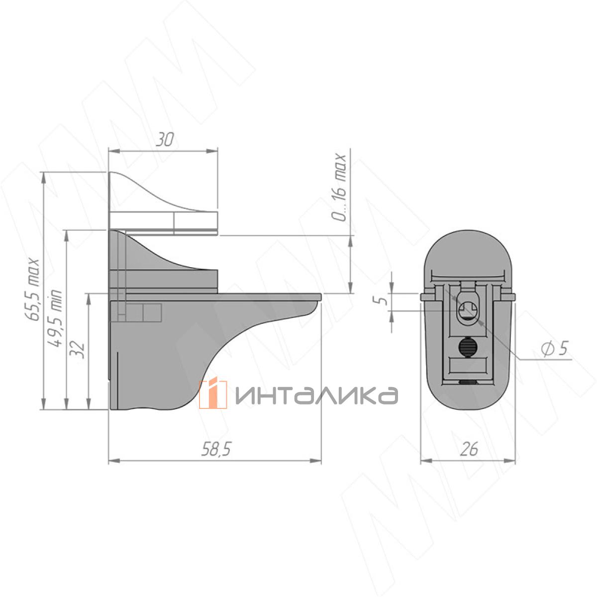 ПЕЛИКАН Менсолодержатель для деревянных и стеклянных полок 0-16 мм, черный матовый, SHH.12.BLM