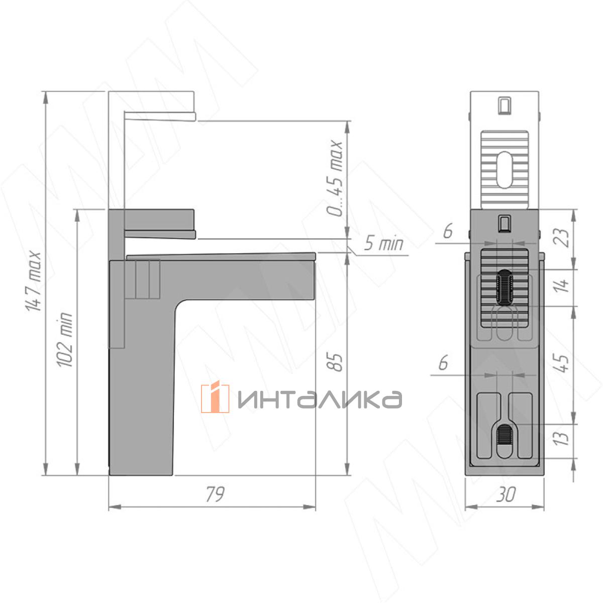 КВАДРО МАКСИ Менсолодержатель для деревянных и стеклянных полок 0-50 мм, хром матовый, SHH.05.SP