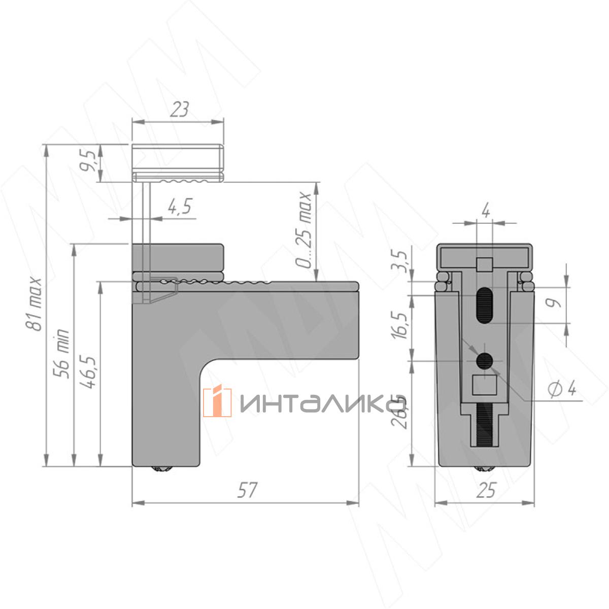 КВАДРО МИНИ Менсолодержатель для деревянных и стеклянных полок 0-25 мм, хром матовый, SHH.03.SP