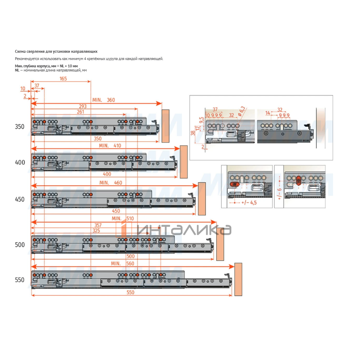 Применение: для создания выдвижных мебельных ящиков с боковыми стенками толщиной 13–16 мм