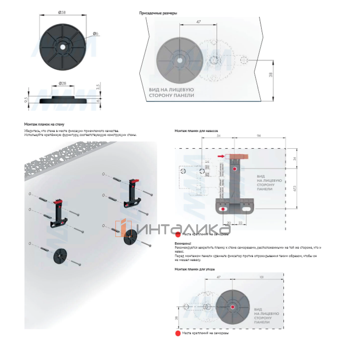 Необходимо обеспечить минимум 30 мм (рекомендуем 100 мм) свободного пространства над стеновой панелью для возможности фиксации к стене, а также для доступа к регулировочным винтам навеса