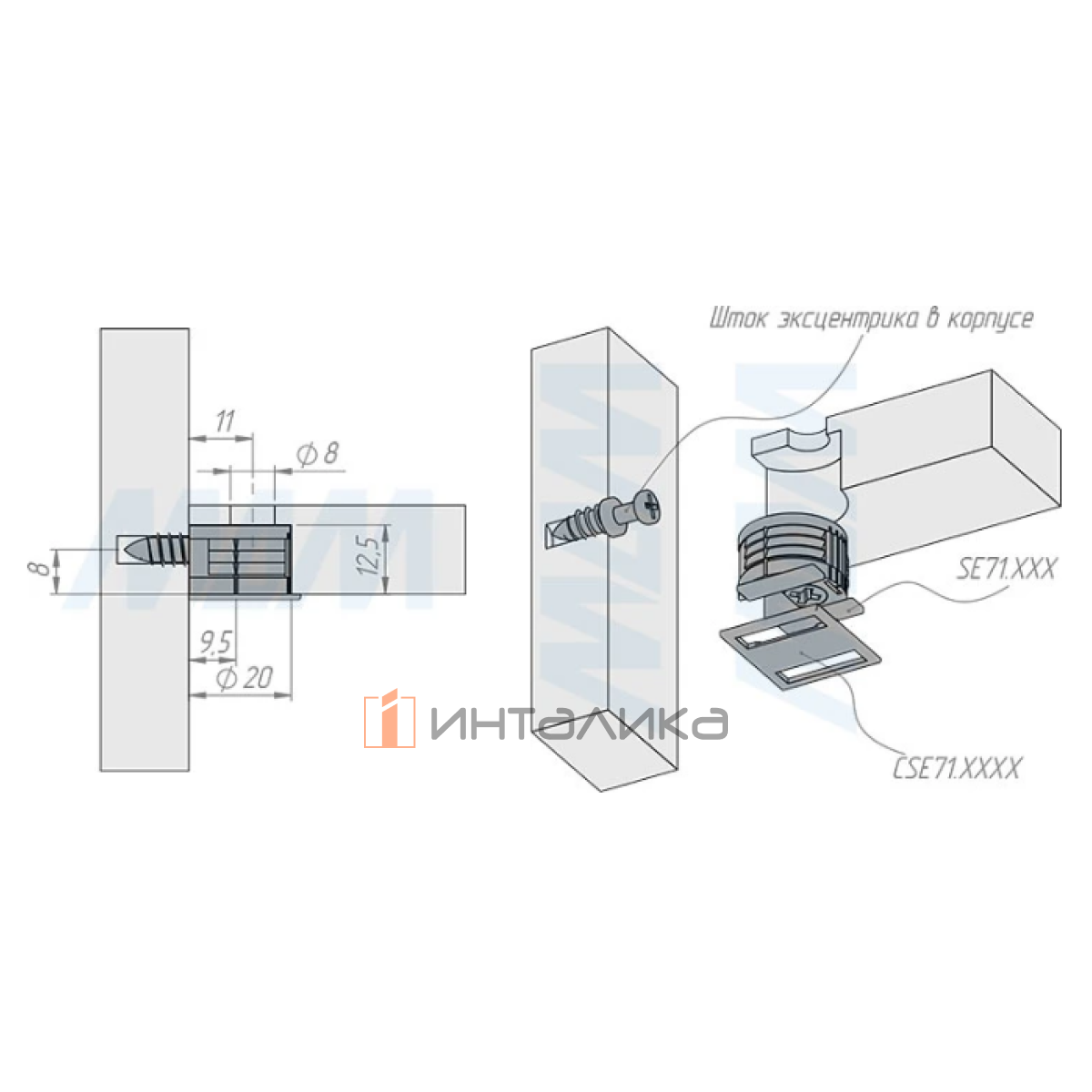 Расстояние сверления до центра эксцентрика: 11 мм