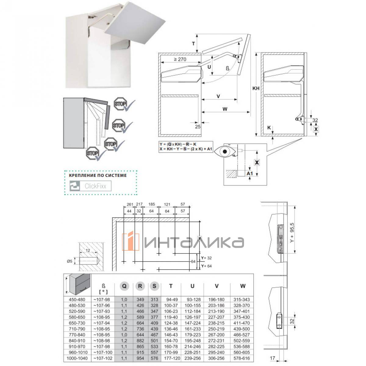 Встроенная технология Multi-Position Stop надежно фиксирует фасад в любом положении