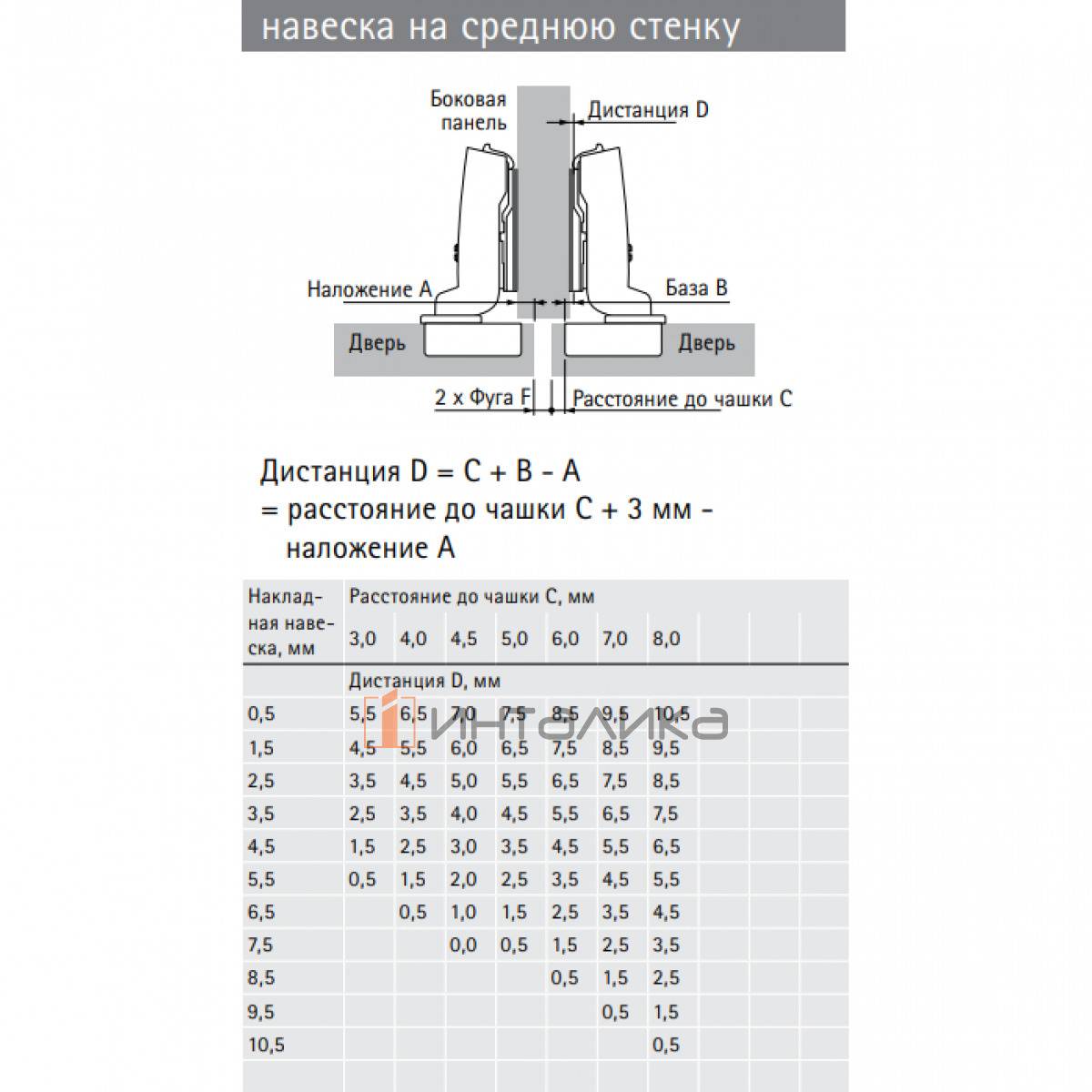 Применяется для открывания мебельных фасадов толщиной от 15 до 32 мм в случае, когда фасад накладывается на боковину корпуса
