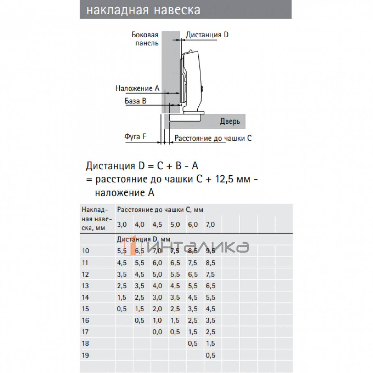 Скрытая мебельная петля Hettich Sensys 110 градусов, накладная, со встроенным в консоль петли доводчиком
