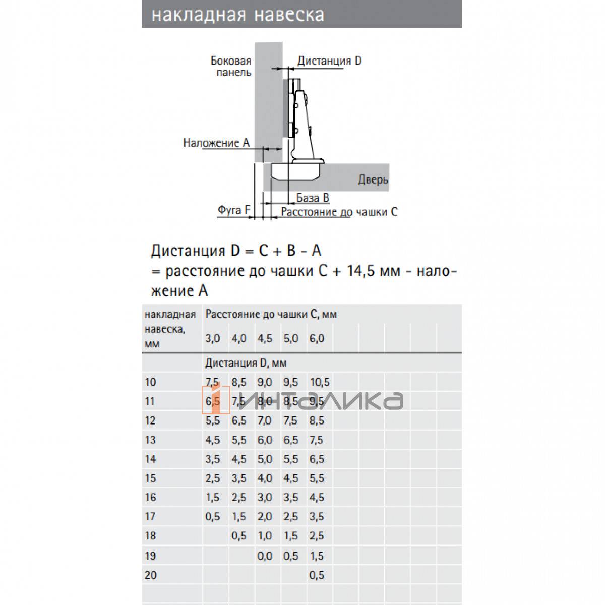 Петля HETTICH Slide On 2333 (B14.5) 95°, для дверей 14-25 мм, накладная, Ø35, под саморезы, (V200), никель, 1078660