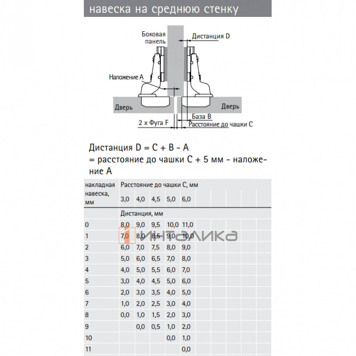 Диапазон наложения двери от 0 до 11 мм
