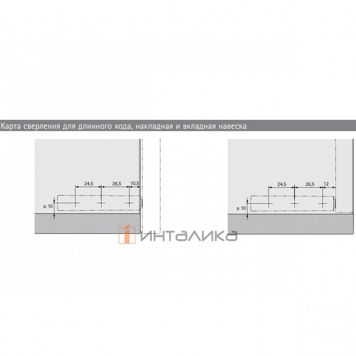 Применяется для накладной, полунакладной и вкладной навески для петель с пружинами