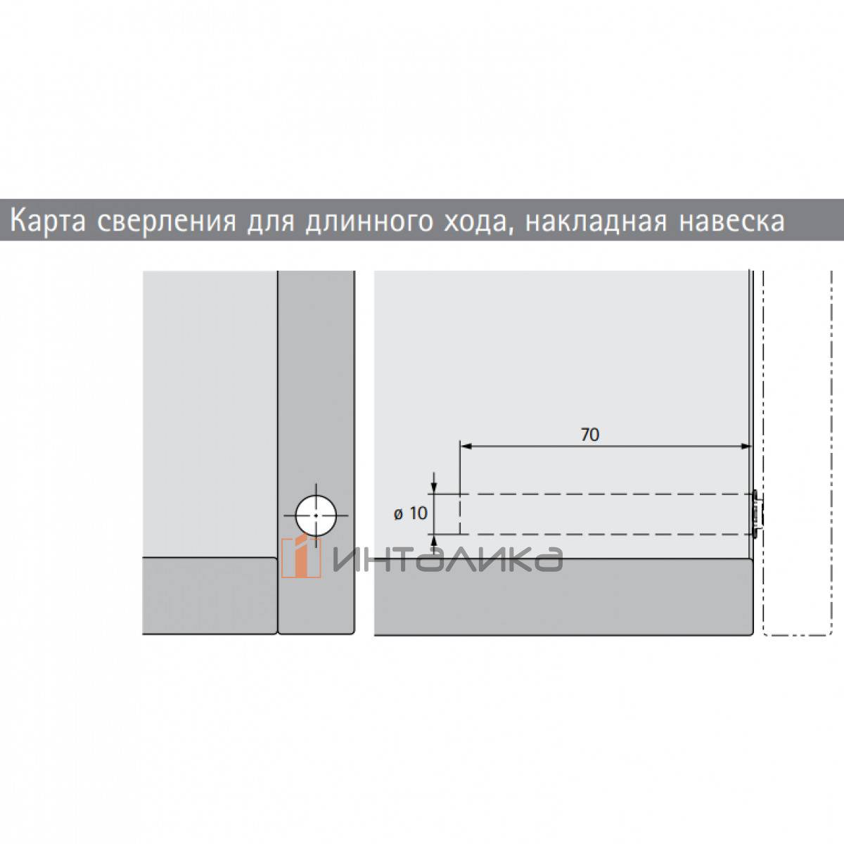 Применяется для накладной, полунакладной и вкладной навески с петлями без пружин