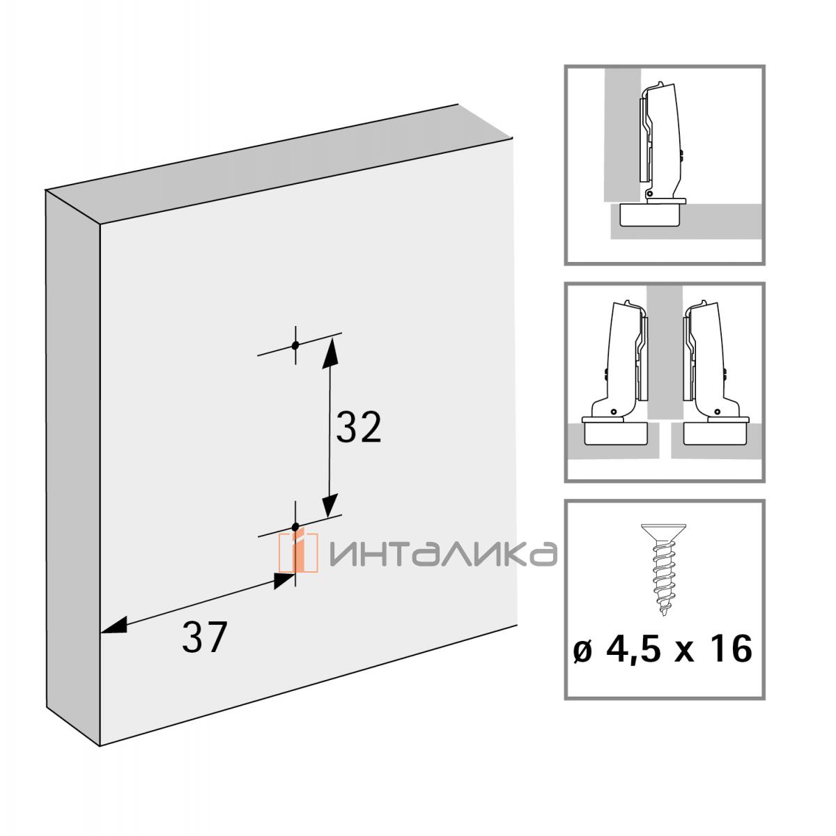 Расстояние между центрами винтов - 32 мм, от передней кромки до центра винта - 37 мм