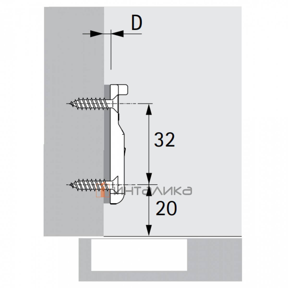 Расстояние между центрами винтов - 32 мм, от передней кромки до центра винта - 20 мм