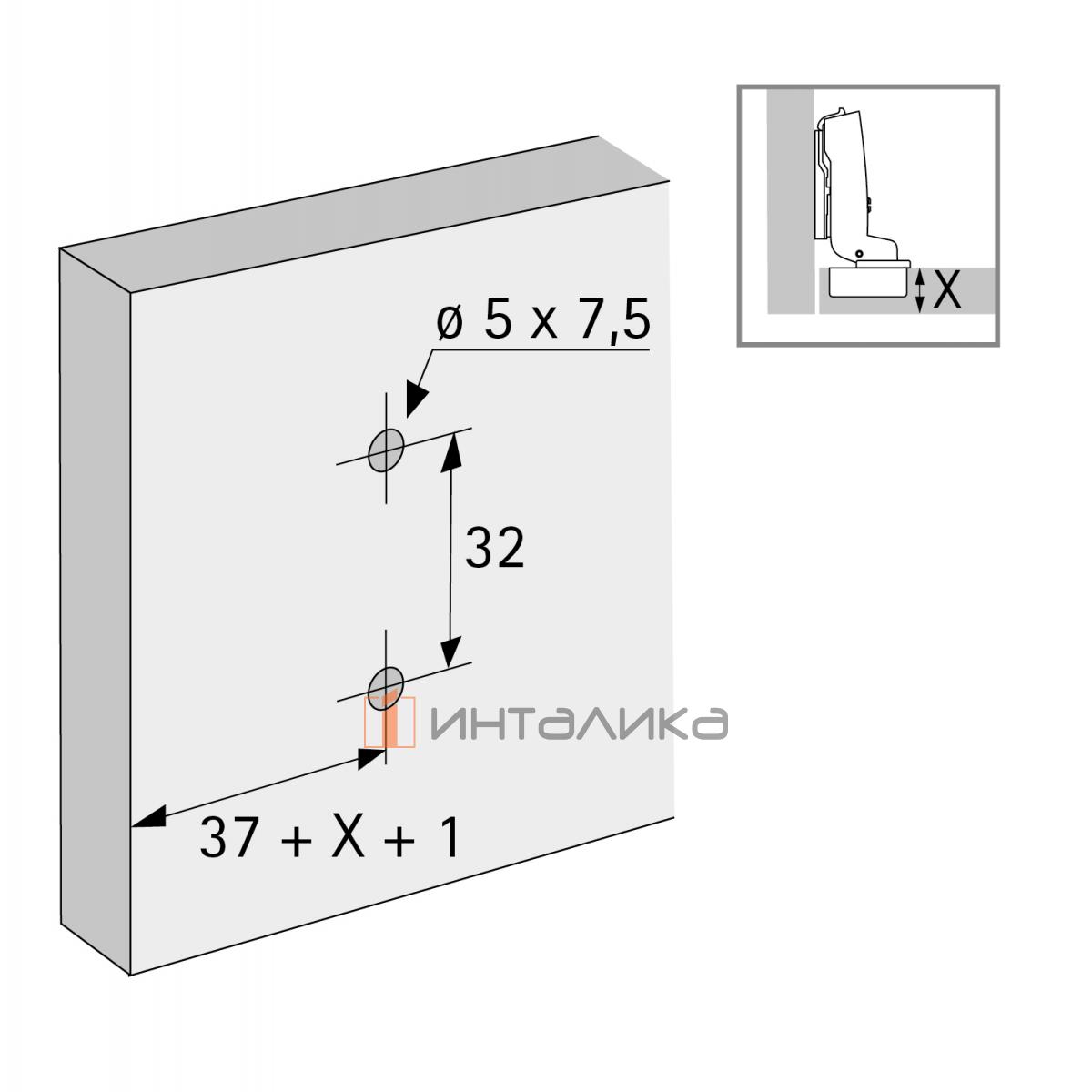 Монтаж на специальные винты ø 5 x 7,5 мм (входят в  комплектацию)