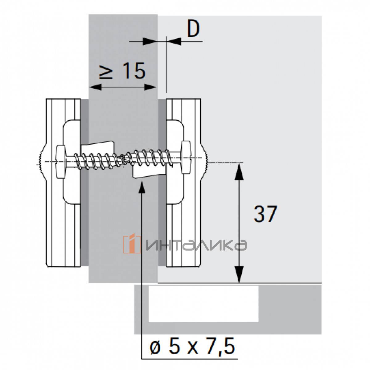 Запатентованная крестовая ответная планка HETTICH Slide On D=3 мм с винтами для средних стенок (37/32 мм)
