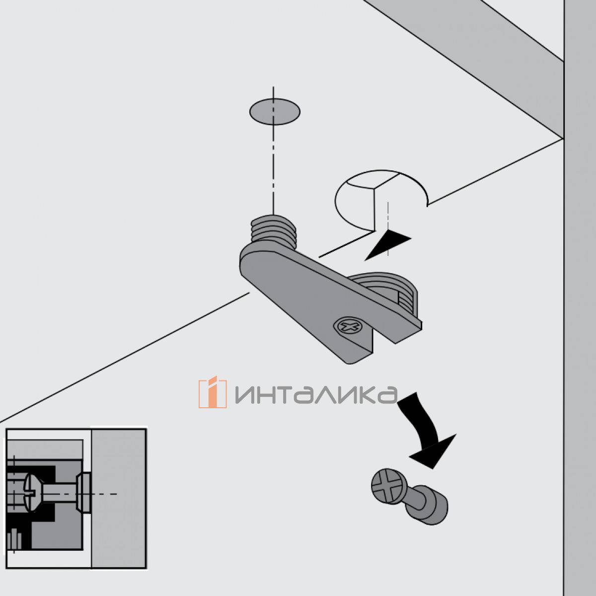 Сферический эксцентрик используется для установки полки сверху, в случае монтажа снизу требуется сквозное отверстие в панели