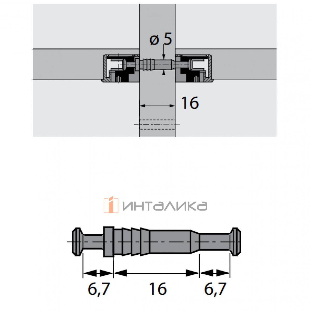 Дюбель двойной HETTICH DU 712, L 6.7мм, Ø 5мм, толщина стенки 16мм, 1019462