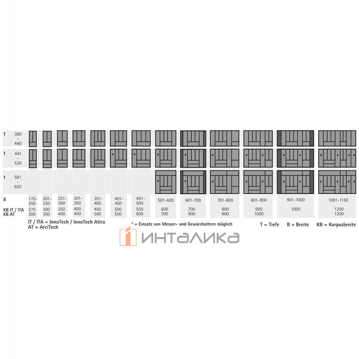 Применяется в стандартных фасадных и внутренних ящиках Hettich высотой от 70 мм