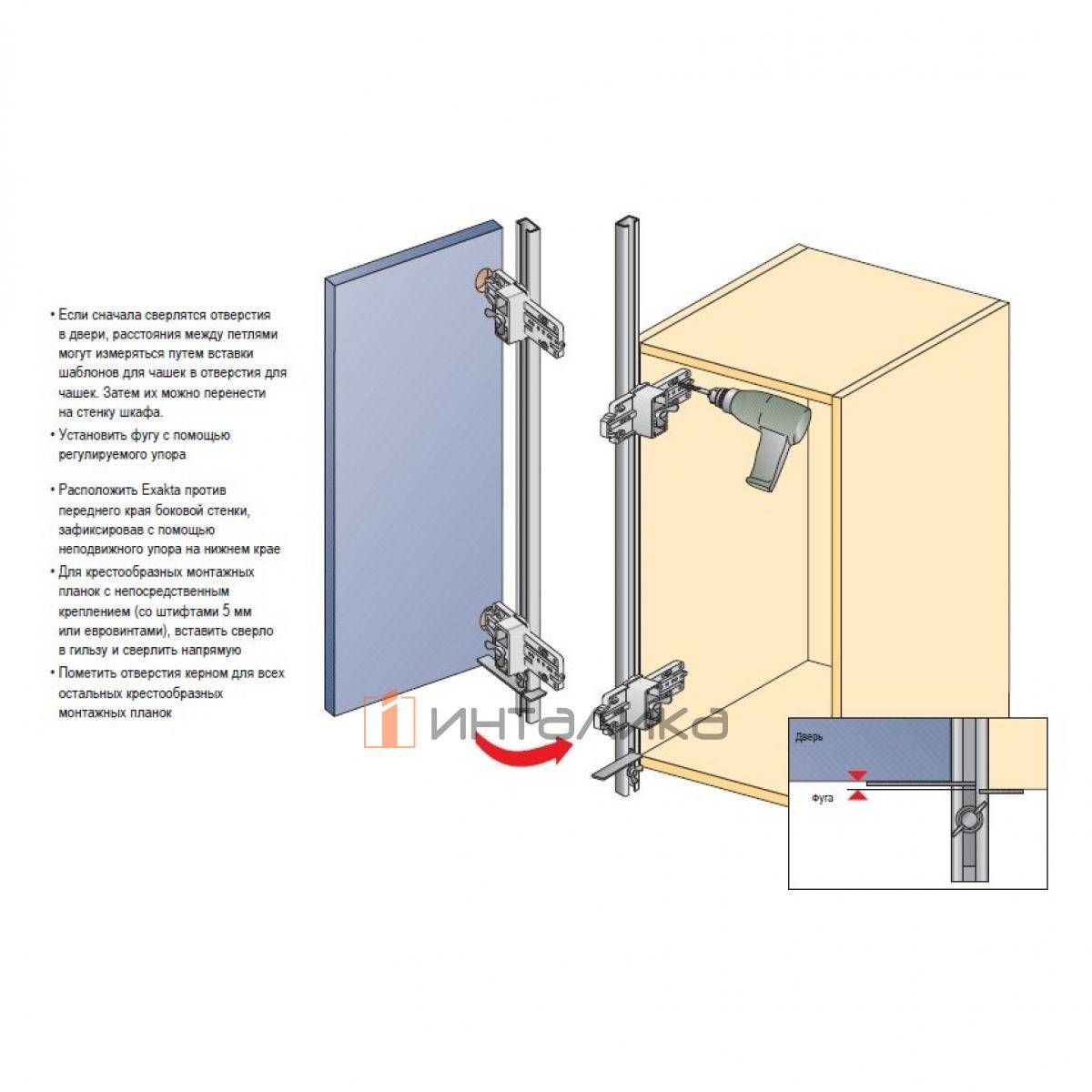 Регулируемый упор сверлильного кондуктора Hettich Exaсta применяется для установки сверлильно-разметочного кондуктора