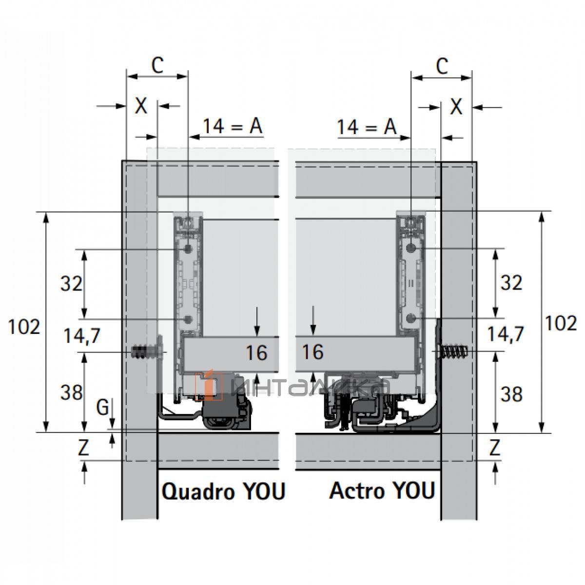 Возможные регулировки: перекрытия боковой передней панели +20/-6 мм, высоты передней панели, от нижнего края днища до +35 мм