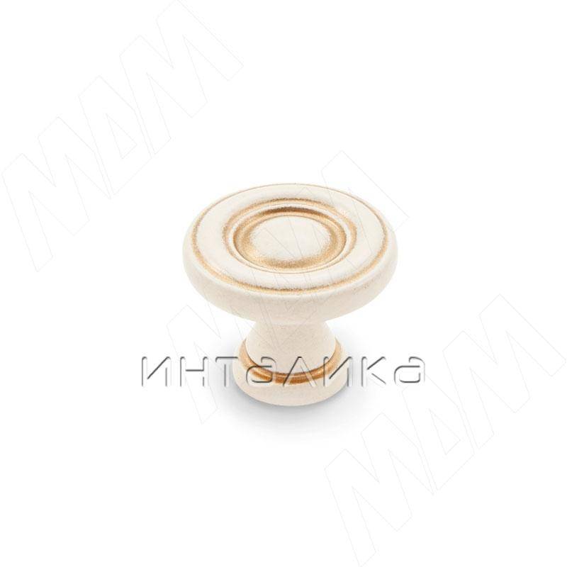 Ручка-кнопка D25мм cлоновая кость/золото винтаж (WPO.811.025.00V5), WPO.811.025.00V5