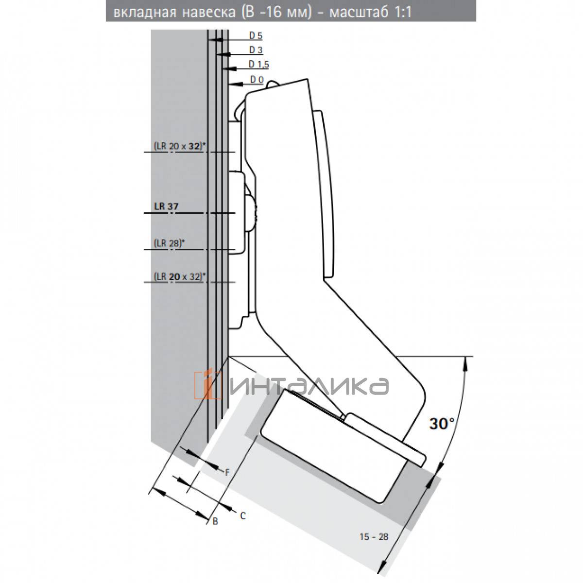 Применяется для открывания мебельных фасадов толщиной от 15 до 28 мм