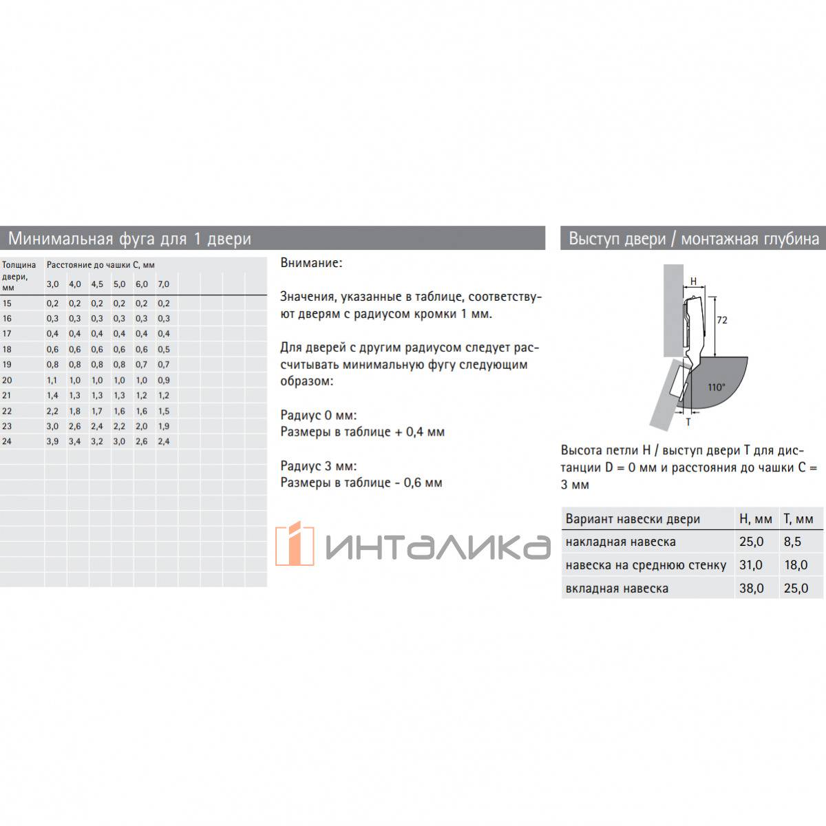 Скрытая мебельная петля Hettich Sensys 110 градусов, полунакладная, без пружины