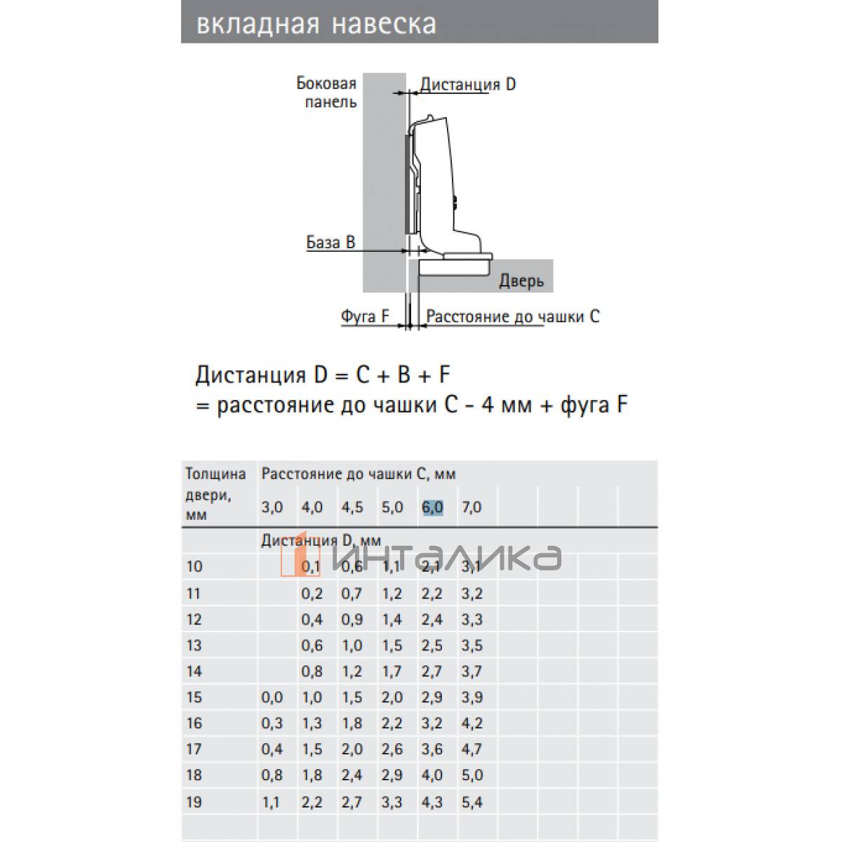 Скрытая мебельная петля Hettich Sensys 110 градусов, вкладная, без пружины