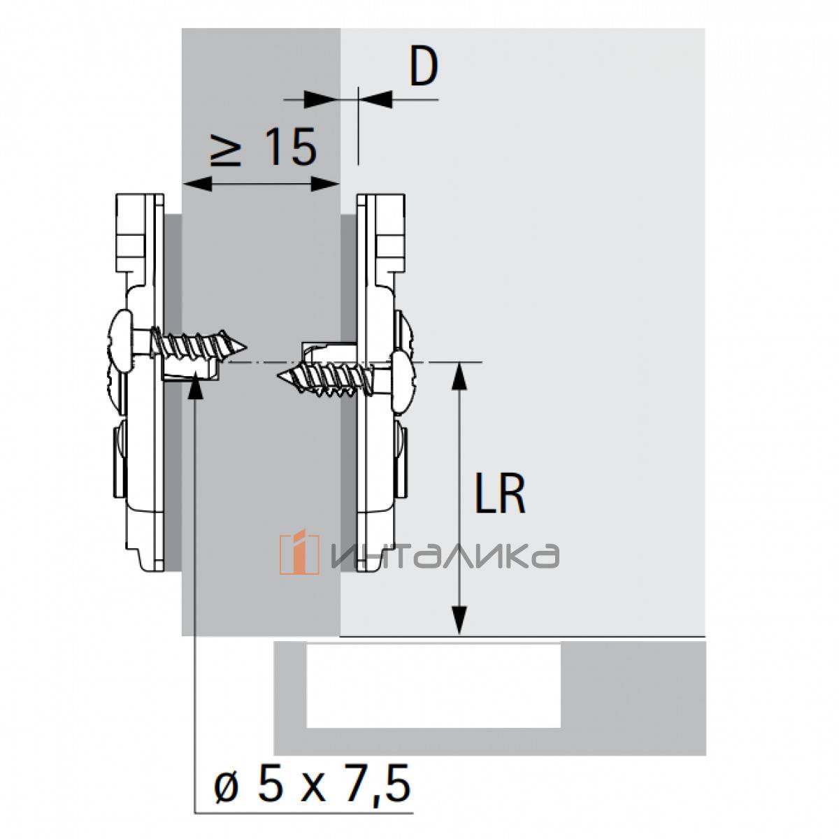 Монтаж на специальные винты ø 5 x 7,5 мм (входят в  комплектацию)