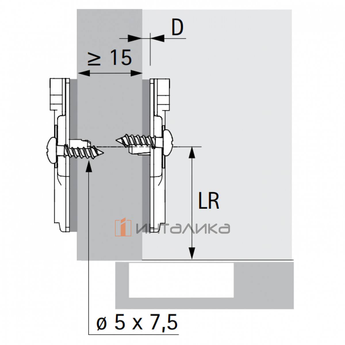 Монтаж на специальные винты ø 5 x 7,5 мм (входят в  комплектацию)