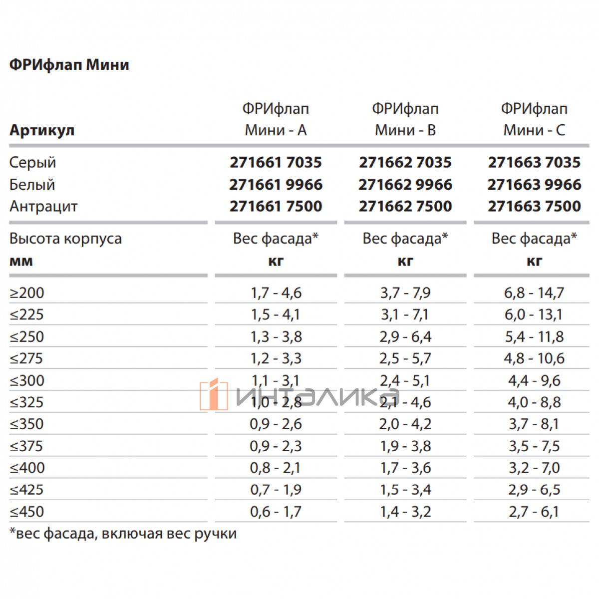 Силовые механизмы с рычагами KESSEBOHMER FreeFlap Mini, тип A, крепления фасада, трафарет, заглушки, серый, 2716617035