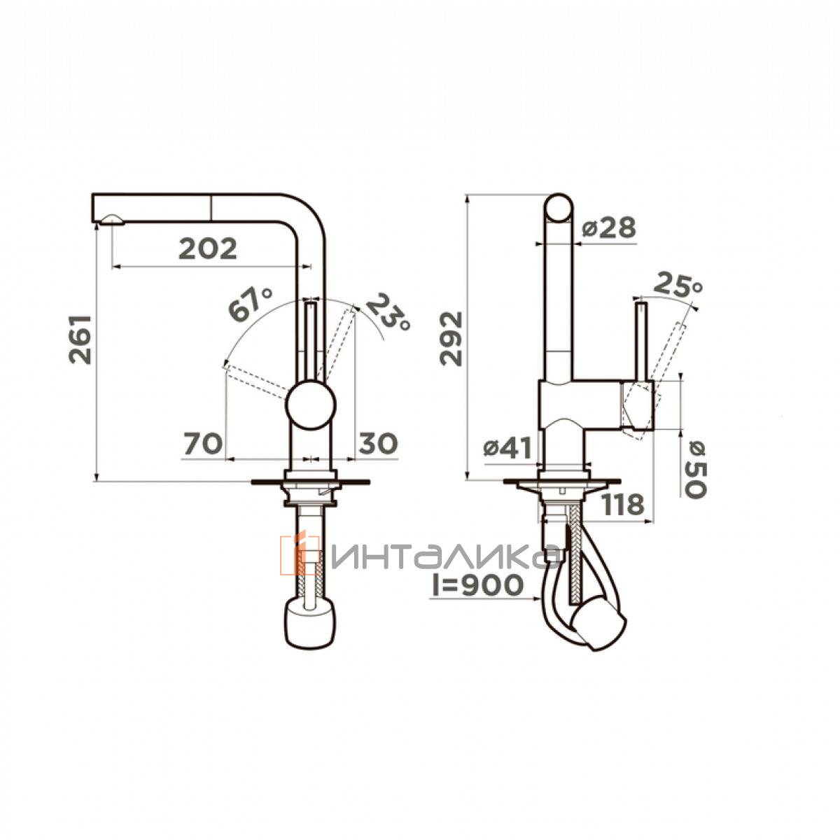 Смеситель Omoikiri AKASHI-S однорычажный, с выдвижным шлангом, хром, OAK-CR-35-S