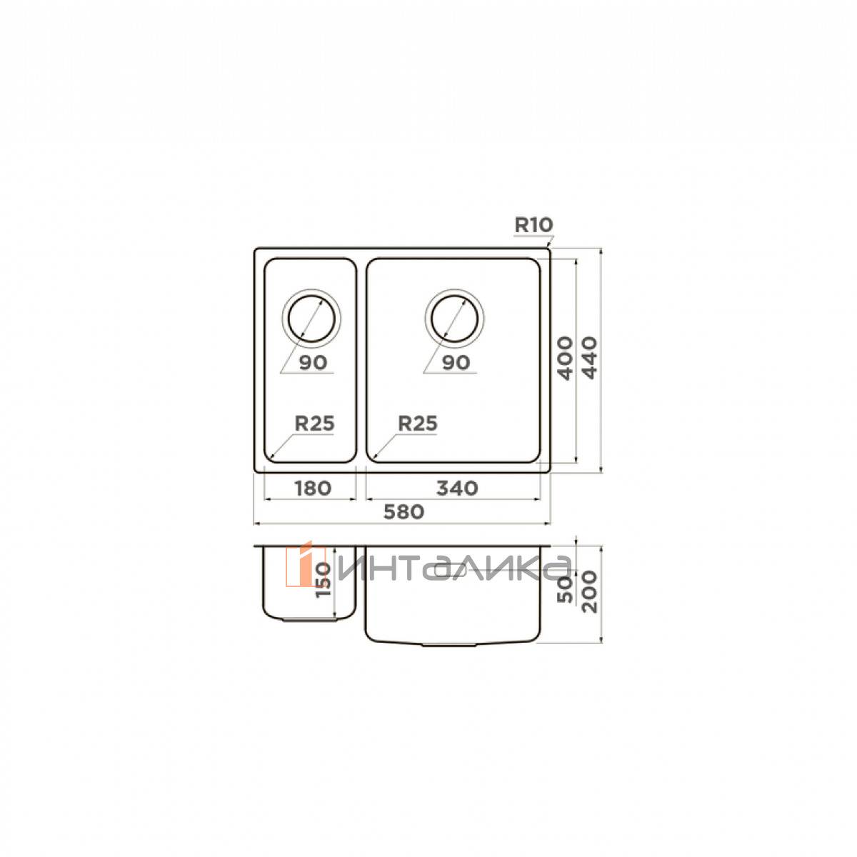 Мойка Omoikiri TADZAVA 58-2-U/I L нержавеющая сталь, 600, накладная, нержавеющая сталь, 4993774