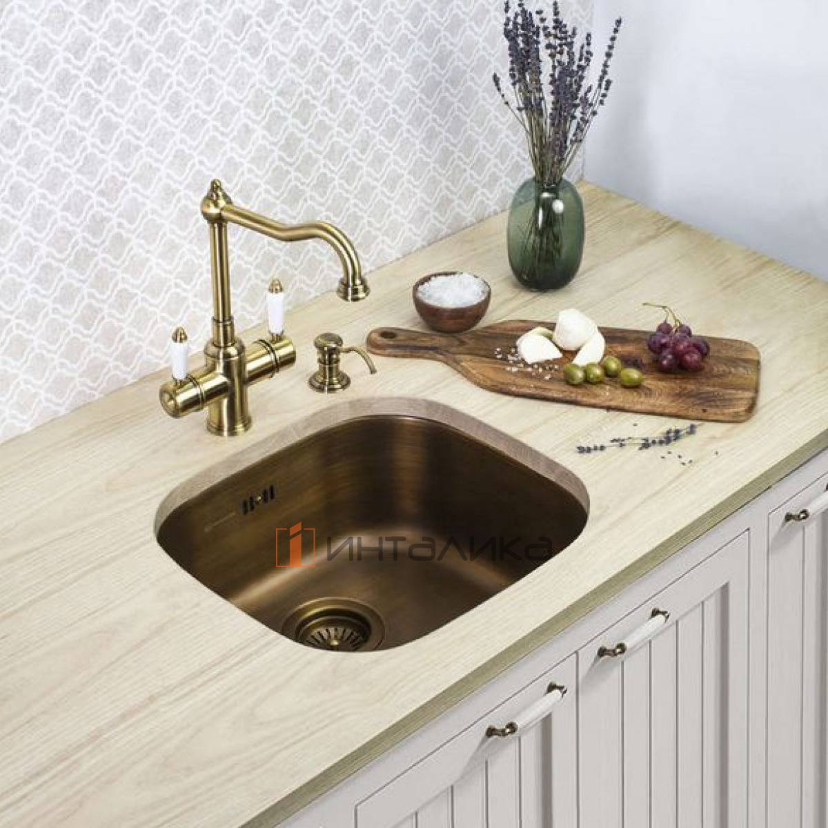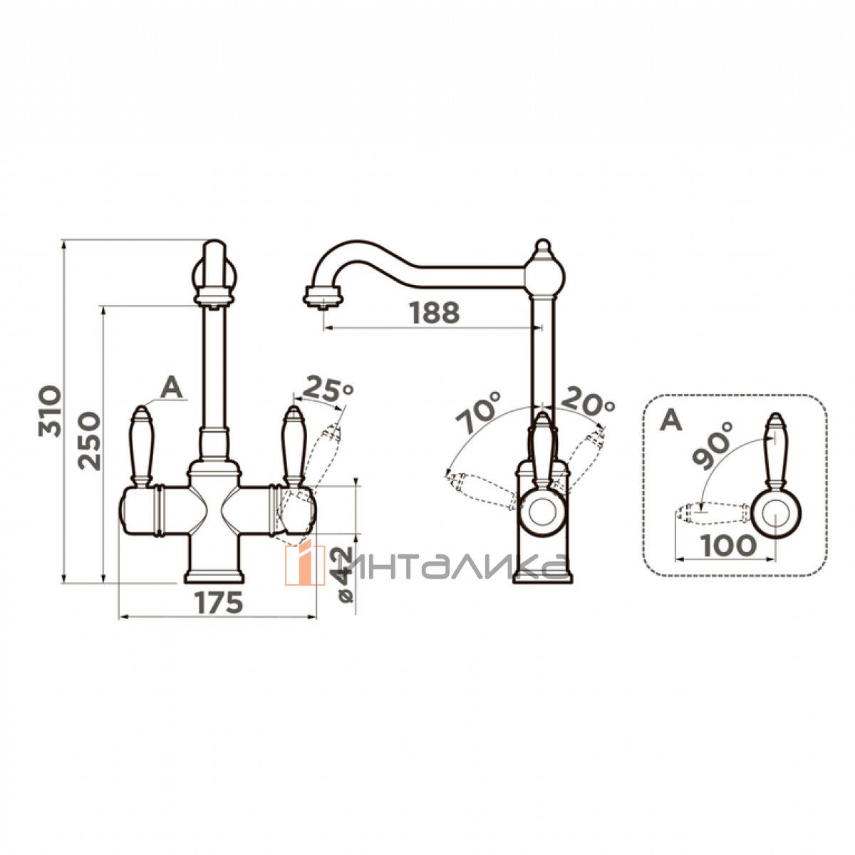 Смеситель Omoikiri TOTTORI двухрычажный, с выводом для питьевой воды, античное серебро, 4994046