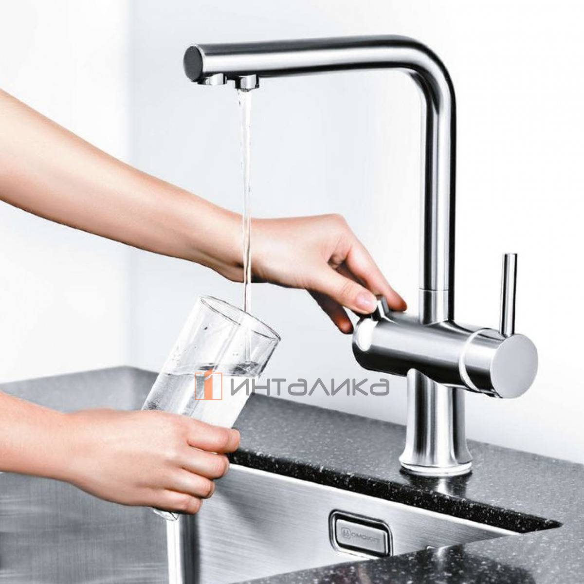 Смеситель Omoikiri HOTARU однорычажный, с выводом для питьевой воды, хром | белый, 4994051