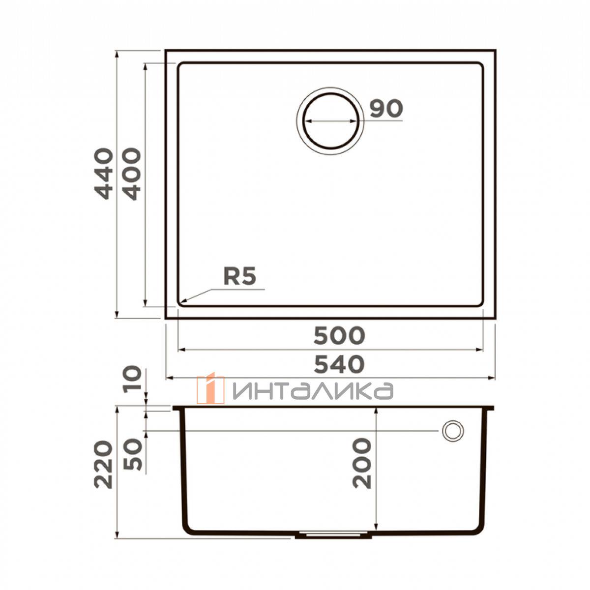 Мойка Omoikiri BOSEN 54-U Tetogranit, 600, под столешницу, черный, 4993161
