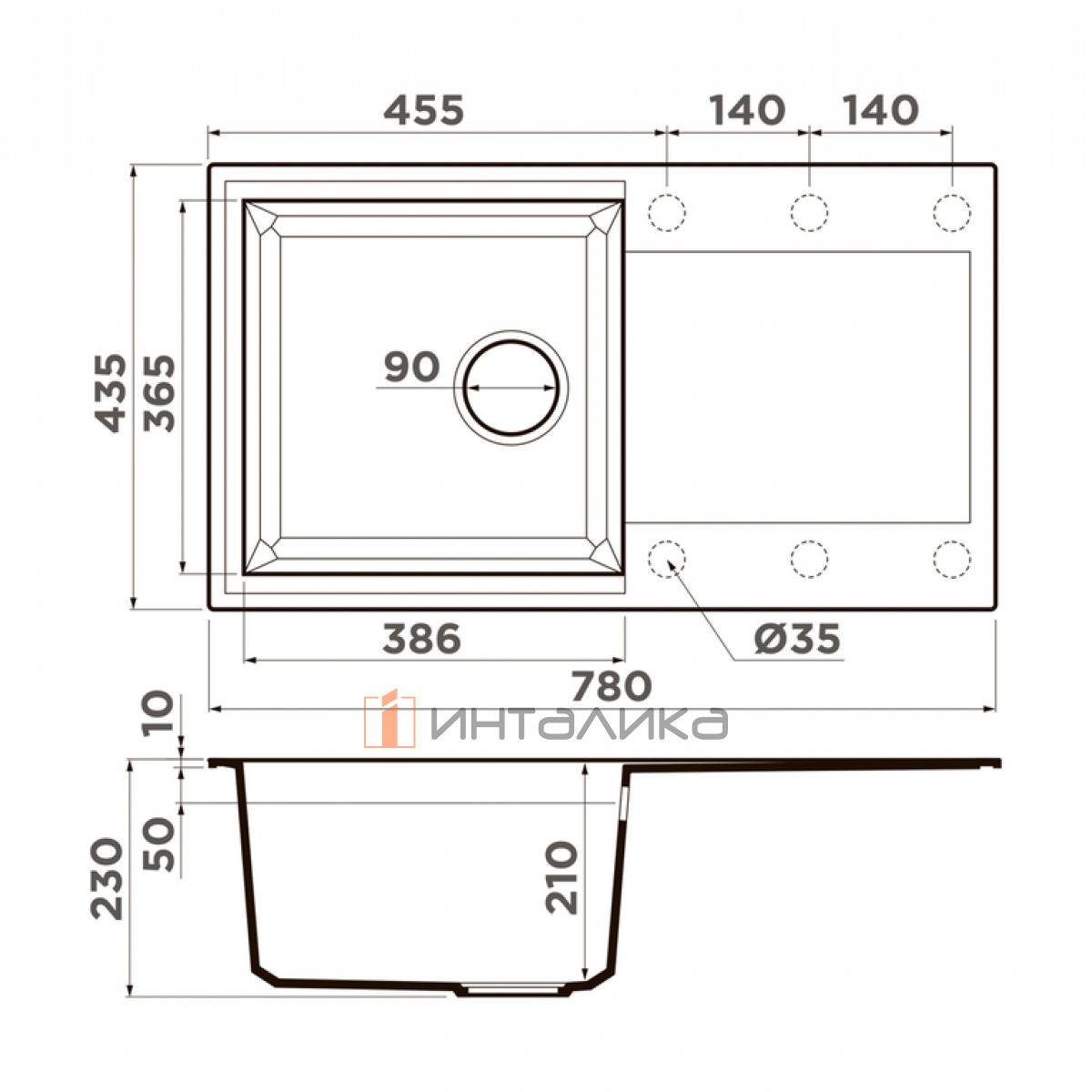 Ширина мойки