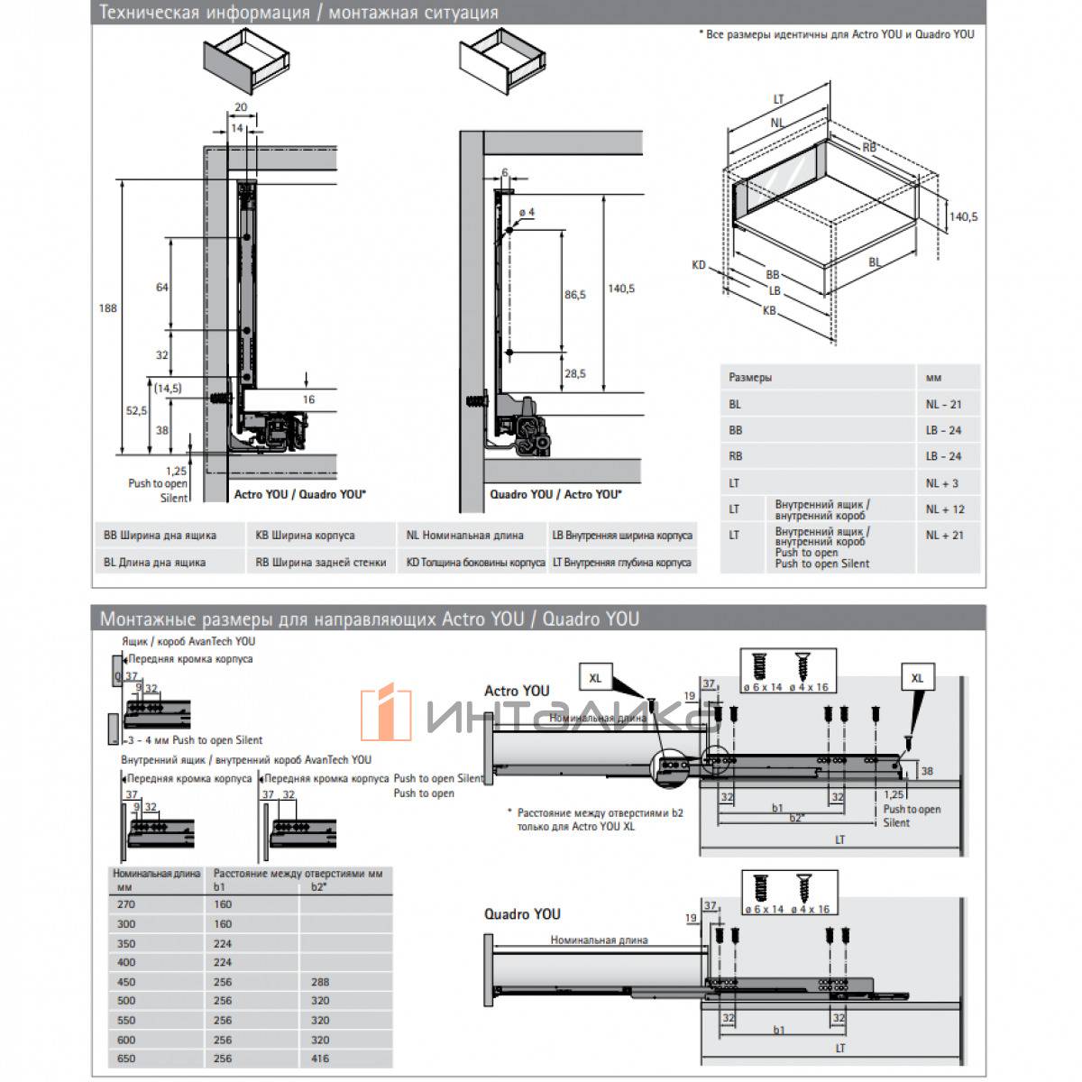 Направляющие HETTICH Actro You L полного выдвижения Silent System, ЕВ21, NL450, G40