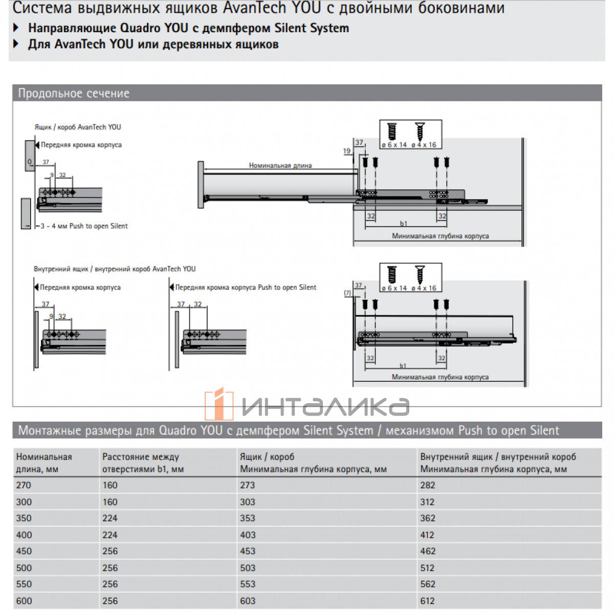 • Направляющие полного выдвижения для применения с системой выдвижных ящиков AvanTech YOU или с деревянными ящиками с фиксаторами